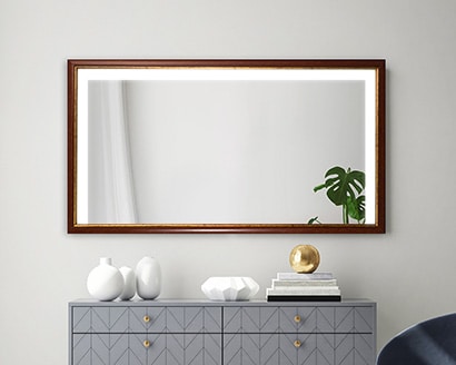 Hvis speilet med lys har en ramme av tre bør du bruke møbelpolish for å holde den blank og ny.